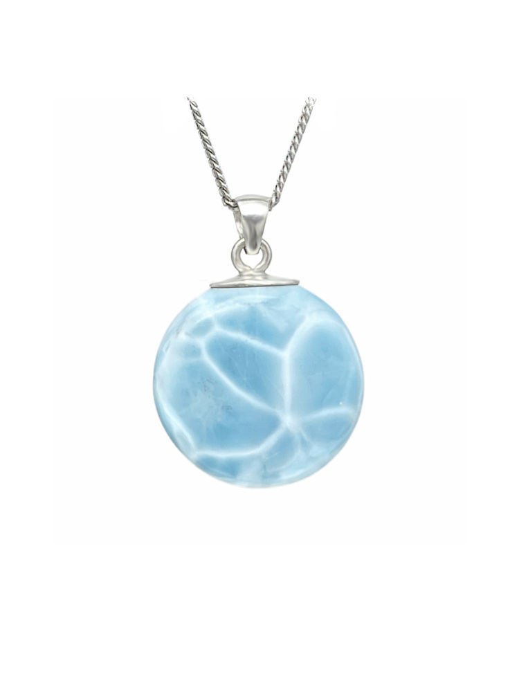 The only thing better than Larimar is ... more Larimar, of course! And that's why we love free form pendants! And then a double-sided free form - AMAZING! In the case of free forms, the artisan looks at the slab of Larimar, finds the very "best" part of it and cuts that out - the shape is determined by the stone, not vice versa.